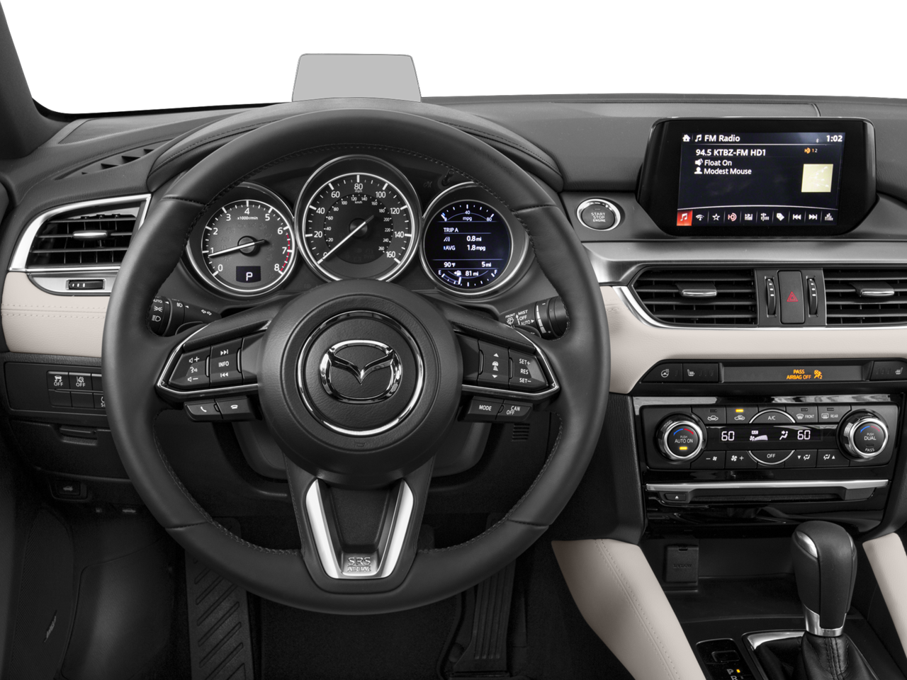 - Radio: AM/FM/CD/MP3/AUX BOSE 11-Speaker & HD Radio -inc: audio menu voice-command, Bluetooth hands free phone and audio, E911 automatic emergency notification, 7.0" full-color touch-screen display for audio, phone, rearview camera (and available RCTA and navaigation system), multi-function commander control for touch-screen display, Mazda navigation system, Aha, Pandora and Stitcher internet radio compatibility, Radio Broadcast Data System (RBDS) program information, SiriusXM satellite radio w/4-month trial subscription and roof-mounted shark fin antenna, SMS text message audio delivery and reply and USB audio input