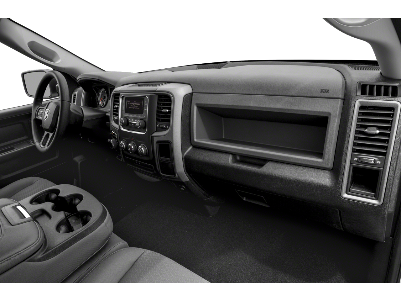 This car is well equipped with the following features: Chrome Plus Package w/Low Volume Paints (17 x 7 Aluminum Wheels, Audio Jack Input for Mobile Devices, Bright Front Bumper, Bright Grille, Bright Rear Bumper, Carpet Floor Covering, Center Hub, Cloth 40/20/40 Bench Seat, Delete Spray In Bedliner, Front Floor Mats, Integrated Voice Command w/Bluetooth®, Manual Adjust Seats, Media Hub (USB, AUX), Radio: Uconnect 3.0, Rear Floor Mats, Rear Folding Seat, Remote Keyless Entry w/All-Secure, and Remote USB Port), Quick Order Package 22B Tradesman, Tradesman Package, 17 x 7 Steel Wheels, 4-Wheel Disc Brakes, 6 Speakers, ABS brakes, Active Grille Shutters, Air Conditioning, AM/FM radio, Auto-dimming Rear-View mirror, Brake assist, Delay-off headlights, Driver door bin, Dual front impact airbags, Dual front side impact airbags, Electronic Shift, Electronic Stability Control, Exterior Mirrors w/Heating Element, Front anti-roll bar, Front Center Armrest, Front wheel independent suspension, Fully automatic headlights, Heated door mirrors, Heavy Duty Vinyl 40/20/40 Split Bench Seat, Low tire pressure warning, Occupant sensing airbag, Overhead airbag, ParkView Rear Back-Up Camera, Passenger door bin, Power door mirrors, Power steering, Power windows, Radio data system, Radio: 3.0, Rear anti-roll bar, Rear step bumper, Speed control, Tachometer, Tilt steering wheel, Tip Start, Traction control, Variably intermittent wipers, and Voltmeter.