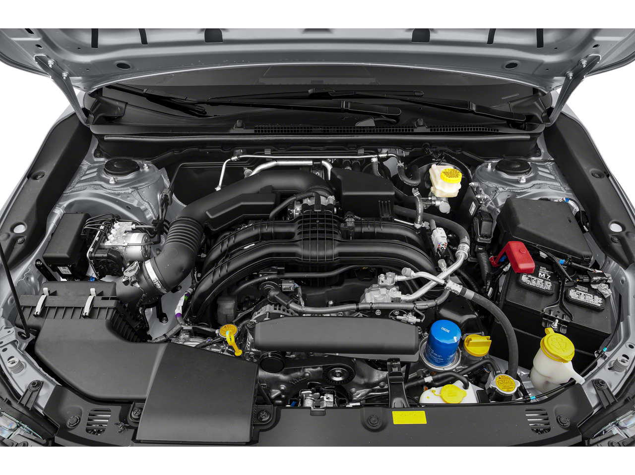 This car is well equipped with the following features: EyeSight (EyeSight System), 16 Steel Wheels w/Full Covers, 4 Speakers, 4-Wheel Disc Brakes, ABS brakes, Air Conditioning, All-Weather Floor Liners, AM/FM radio, Brake assist, Bumpers: body-color, Cargo Cover, Cargo Tray, Cloth Upholstery, Driver door bin, Driver vanity mirror, Dual front impact airbags, Dual front side impact airbags, Electronic Stability Control, Emergency communication system, Exterior Parking Camera Rear, Four wheel independent suspension, Front anti-roll bar, Front Bucket Seats, Front Center Armrest, Front reading lights, Illuminated entry, Knee airbag, Low tire pressure warning, Occupant sensing airbag, Outside temperature display, Overhead airbag, Overhead console, Panic alarm, Passenger door bin, Passenger vanity mirror, Power door mirrors, Power steering, Power windows, Radio data system, Radio: Subaru STARLINK 6.5 Multimedia System, Rear window defroster, Rear window wiper, Remote keyless entry, Security system, Speed control, Speed-sensing steering, Split folding rear seat, Spoiler, STARLINK/Apple CarPlay/Android Auto, Steering wheel mounted audio controls, Tachometer, Telescoping steering wheel, Tilt steering wheel, Traction control, Trip computer, and Variably intermittent wipers.
