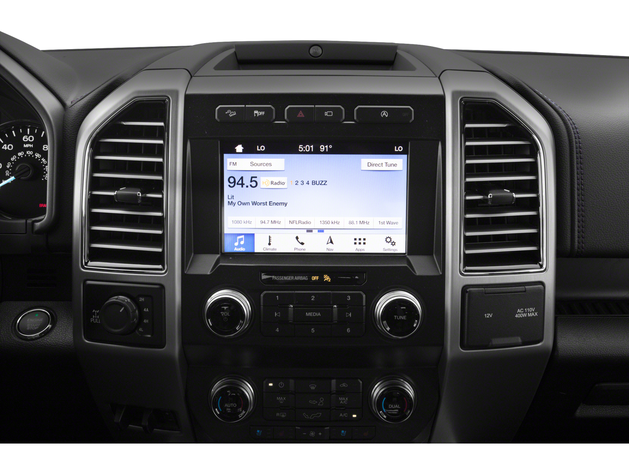 This car is well equipped with the following features: Equipment Group 700A Base, GVWR: 7,050 lbs Payload Package, 10 Speakers, 20 Polished Aluminum Wheels, 3.31 Axle Ratio, 4-Wheel Disc Brakes, ABS brakes, Adjustable pedals, Air Conditioning, Alloy wheels, AM/FM radio: SiriusXM, Auto High-beam Headlights, Auto tilt-away steering wheel, Auto-dimming door mirrors, Auto-dimming Rear-View mirror, Automatic temperature control, Black Unique Multi-Contour Leather Bucket Seats, Brake assist, Bumpers: body-color, Class IV Trailer Hitch Receiver, Compass, Delay-off headlights, Driver door bin, Driver vanity mirror, Dual front impact airbags, Dual front side impact airbags, Electronic Stability Control, Emergency communication system: SYNC 3 911 Assist, Exterior Parking Camera Rear, Front anti-roll bar, Front Bucket Seats, Front Center Armrest, Front dual zone A/C, Front fog lights, Front License Plate Bracket, Front reading lights, Front wheel independent suspension, Fully automatic headlights, Garage door transmitter, Genuine wood door panel insert, Heated door mirrors, Heated front seats, Heated rear seats, Heated steering wheel, Illuminated entry, Low tire pressure warning, Memory seat, Navigation System, Occupant sensing airbag, Outside temperature display, Overhead airbag, Overhead console, Panic alarm, Passenger door bin, Passenger vanity mirror, Pedal memory, Power door mirrors, Power driver seat, Power passenger seat, Power steering, Power windows, Radio data system, Radio: B&O Sound System by Bang & Olufsen, Rain sensing wipers, Rear Parking Sensors, Rear reading lights, Rear seat center armrest, Rear step bumper, Rear window defroster, Remote keyless entry, Security system, SiriusXM Radio, Speed control, Speed-sensing steering, Split folding rear seat, Steering wheel memory, Steering wheel mounted audio controls, SYNC 3, Tachometer, Telescoping steering wheel, Tilt steering wheel, Traction control, Trip computer, Turn signal indicator mirrors, Variably intermittent wipers, Ventilated front seats, Voice-Activated Touchscreen Navigation, and Voltmeter.