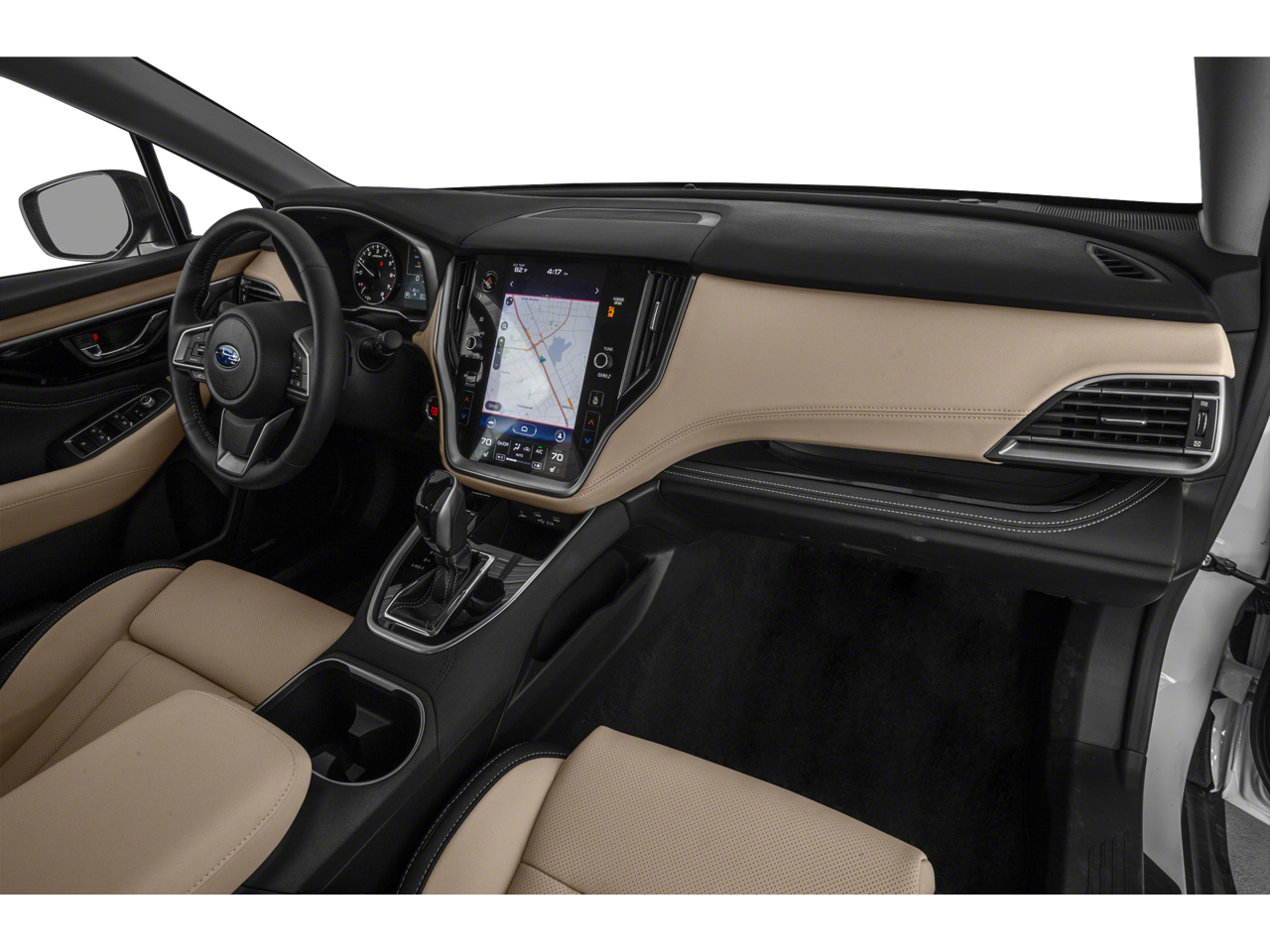 This car is well equipped with the following features: Popular Package #2 (All-Weather Floor Liners, Auto-Dimming Exterior Mirror w/Approach Light, Dome Light LED Upgrade, Rear Bumper Cover, Rear Seat Back Protector, and Splash Guards), Power Moonroof & HSW & Navigation System (Driver Focus (Distraction Mitigation System), harman/kardon Surround Sound Speaker System, Heated Steering Wheel, Power Moonroof, and Radio: Subaru STARLINK 11.6 Multimedia Nav System), 12 Speakers, 3.90 Axle Ratio, 4-Wheel Disc Brakes, ABS brakes, Air Conditioning, Alloy wheels, AM/FM radio: SiriusXM, Auto High-beam Headlights, Auto-dimming Rear-View mirror, Automatic temperature control, Brake assist, Bumpers: body-color, Compass, Driver door bin, Driver vanity mirror, Dual front impact airbags, Dual front side impact airbags, Electronic Stability Control, Emergency communication system: STARLINK Safety and Security (Subscription Required), Exterior Parking Camera Rear, Four wheel independent suspension, Front anti-roll bar, Front Bucket Seats, Front Center Armrest w/Storage, Front dual zone A/C, Front fog lights, Front reading lights, Fully automatic headlights, Garage door transmitter: HomeLink, harman/kardon® Speakers, Heated door mirrors, Heated Front Bucket Seats w/Memory, Heated front seats, Heated rear seats, Illuminated entry, Knee airbag, Low tire pressure warning, Memory seat, Occupant sensing airbag, Outside temperature display, Overhead airbag, Overhead console, Panic alarm, Passenger door bin, Passenger vanity mirror, Perforated Leather-Trimmed Upholstery, Power door mirrors, Power driver seat, Power Liftgate, Power passenger seat, Power steering, Power windows, Radio: Subaru STARLINK 11.6 Multimedia Plus Sys, Rear anti-roll bar, Rear seat center armrest, Rear window defroster, Rear window wiper, Remote keyless entry, Roof rack, Security system, Speed control, Speed-sensing steering, Split folding rear seat, Spoiler, STARLINK/Apple CarPlay/Android Auto, Steering wheel mounted audio controls, Steering Wheel Paddle Shift Control Switches, Tachometer, Telescoping steering wheel, Tilt steering wheel, Traction control, Trip computer, Turn signal indicator mirrors, Variably intermittent wipers, Wheels: 18 x 7J Black Aluminum Alloy, and Wireless Charger.