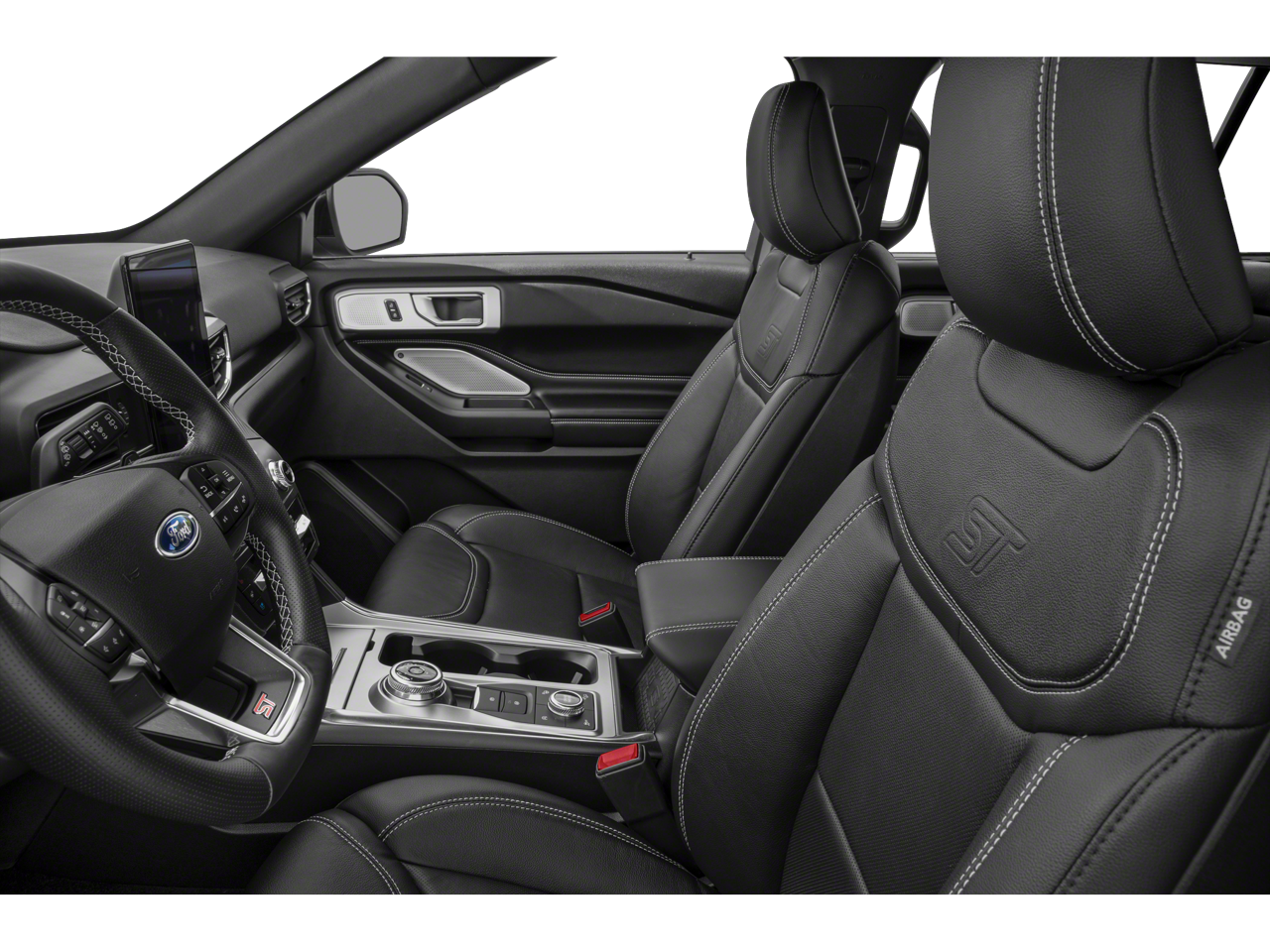 Under the hood, the Explorer ST's 3.0L EcoBoost V6 engine delivers a thrilling 400 horsepower, seamlessly channeled through a responsive 10-speed automatic transmission and Ford's intelligent 4WD system. This dynamic powertrain not only provides exhilarating acceleration but also remarkable efficiency, with an EPA-estimated 18 city/24 highway MPG.